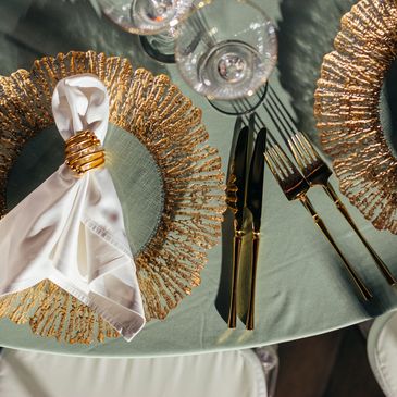 We offer elegant charger plates for rent to elevate your event décor.